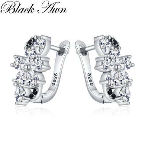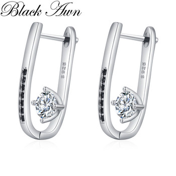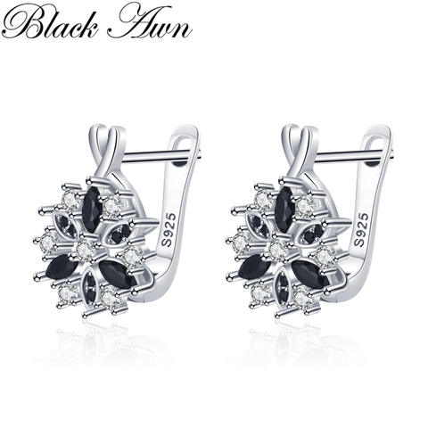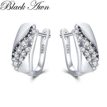 महिलाओं के लिए क्लासिक सिल्वर हूप इयररिंग्स काले स्पिनेल स्टोन और काले रंग के मिश्र धातु बाइजोक्स मॉडल i228