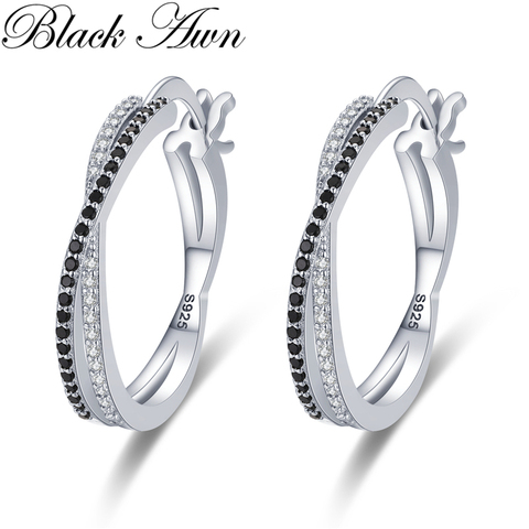 Orecchini a cerchio spinello classici in argento romantico da donna alla moda forma geometrica nero ottone Awn lunetta