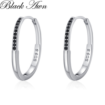 Классические серебряные и черные серьги-кольца для женщин круглые модные шпинель обручальные позолоченные для юбилеев I200