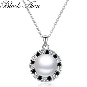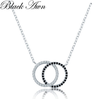 Siyah AWN kadın gümüş kolye ile yeni Trendy yuvarlak kolye K073Link zinciri ana taş olarak zirkon içeren